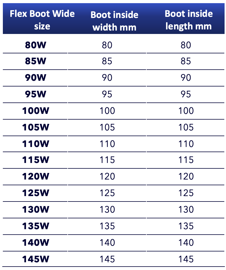 Please note: The same neoprene gaiters, TPU gaiters, and back straps are compatible with both the standard and wide style Flex Boots.